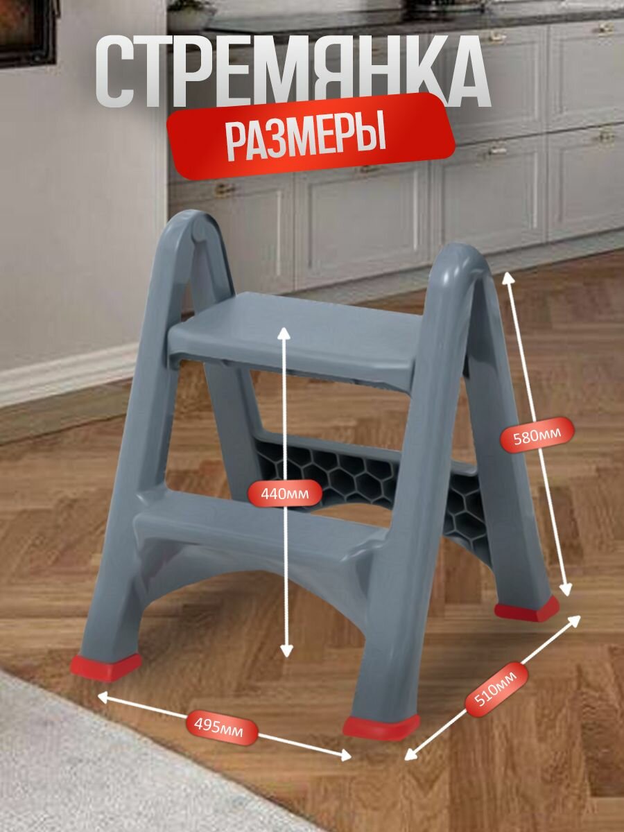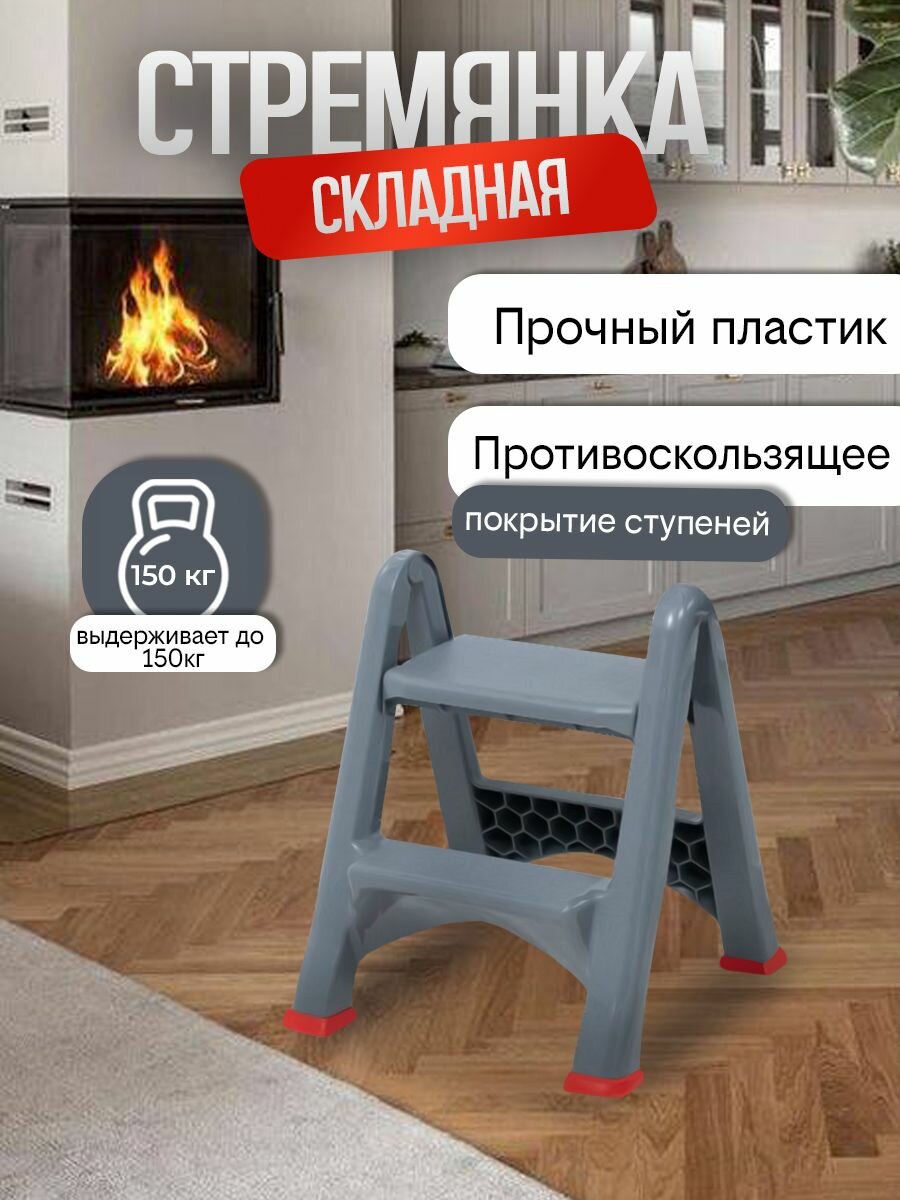 Стремянка складная с антискользящим покрытием, 2 ступени, серая информация: