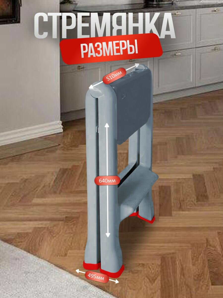 10 цен на Стремянка складная с антискользящим покрытием, 2 ступени, серая