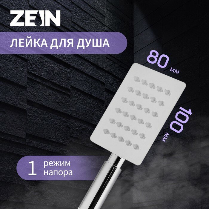 Душевая лейка ZEIN Z423, 1 режим, прямоугольная, полированная нержавеющая сталь (1шт.) информация: