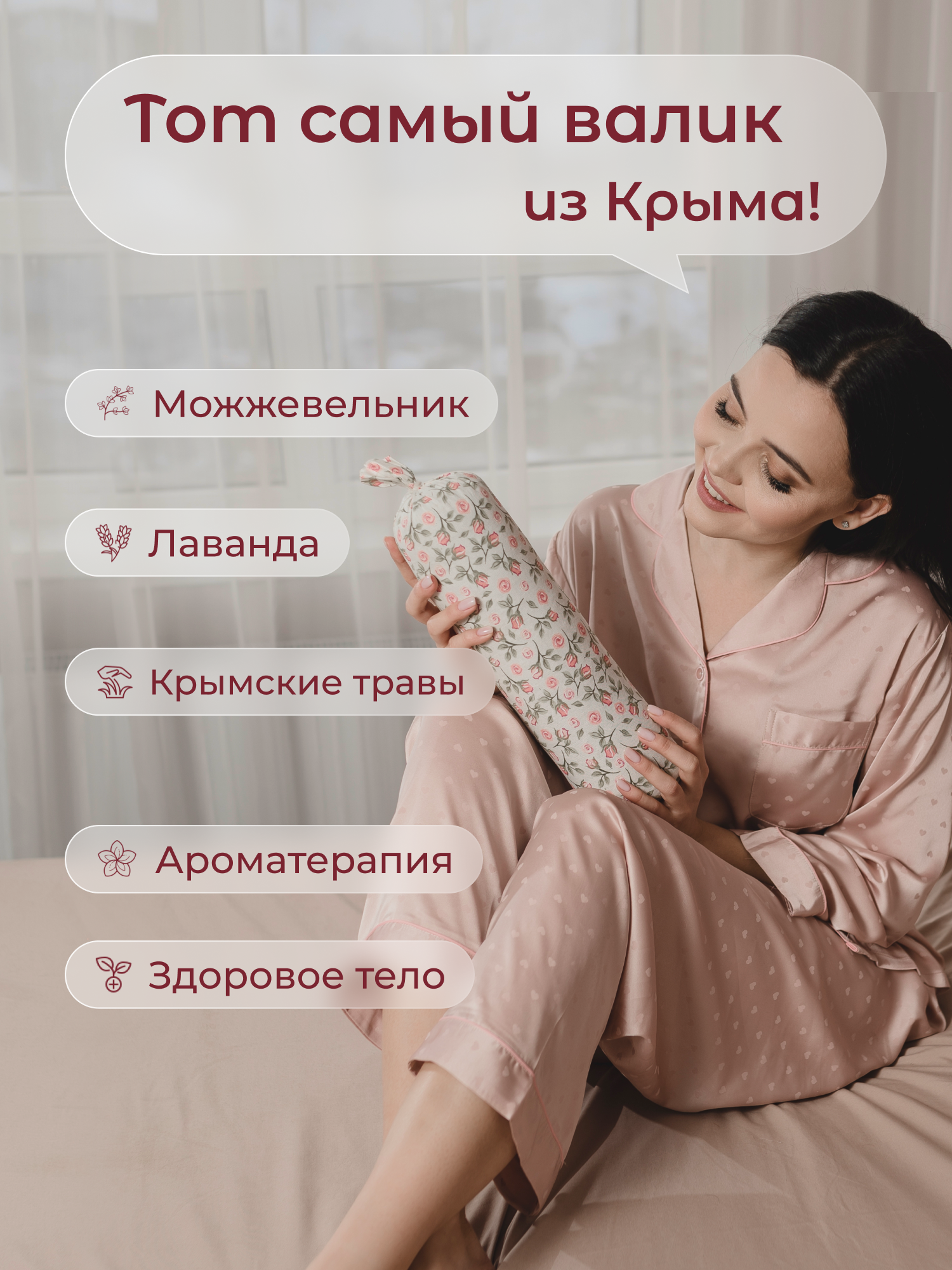 Валик для спины, шеи Травинский с лавандой и можжевельником массажный спортивный, для фитнеса и йоги 35х9 см информация: