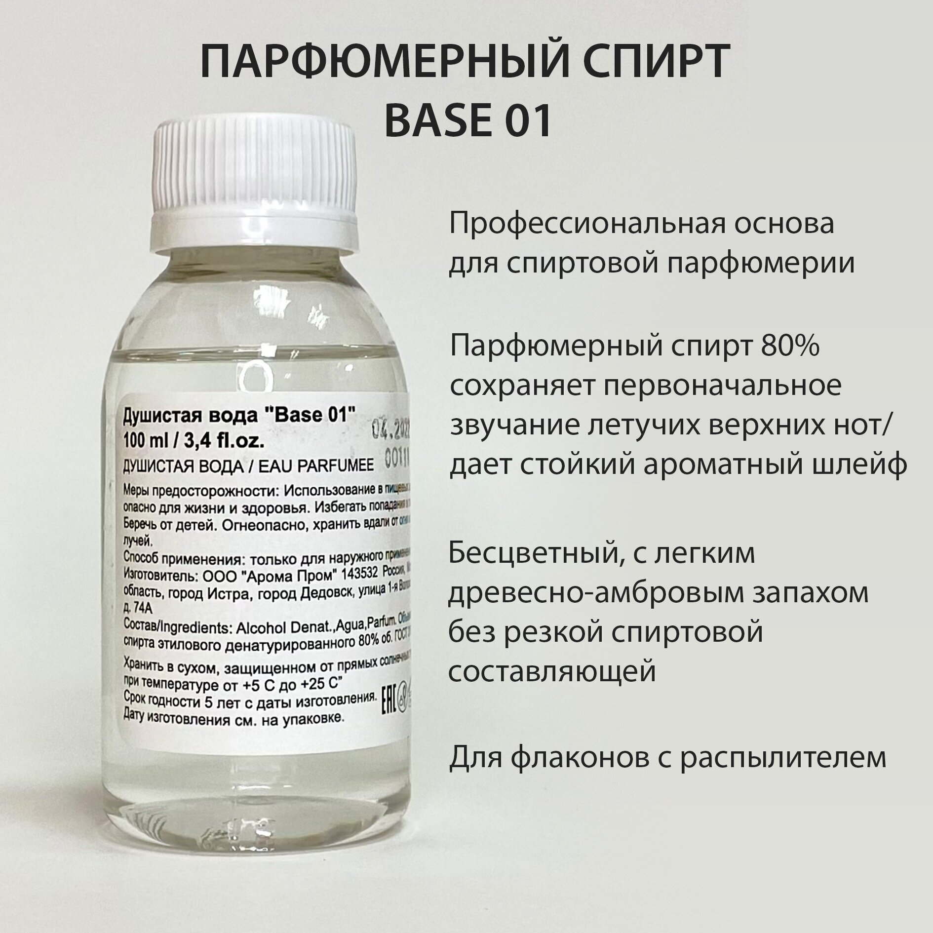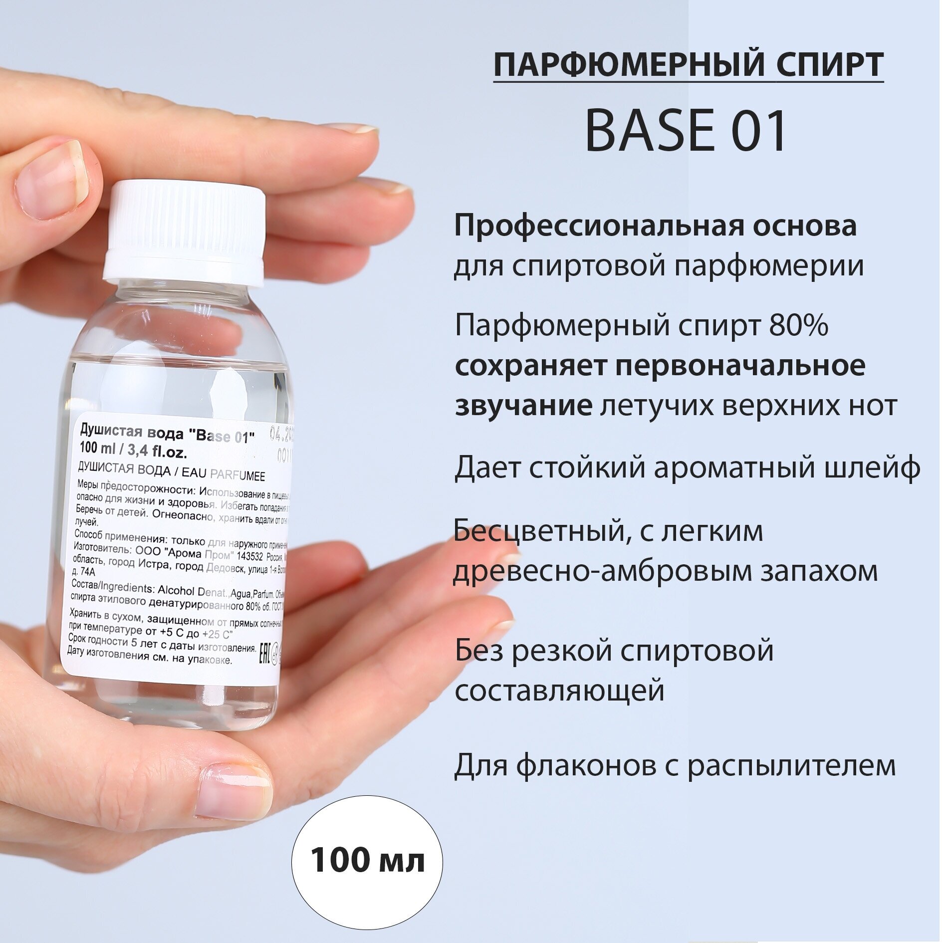 Парфюмерный спирт / основа для духов / Душистая вода "Base 01", 100 мл информация: