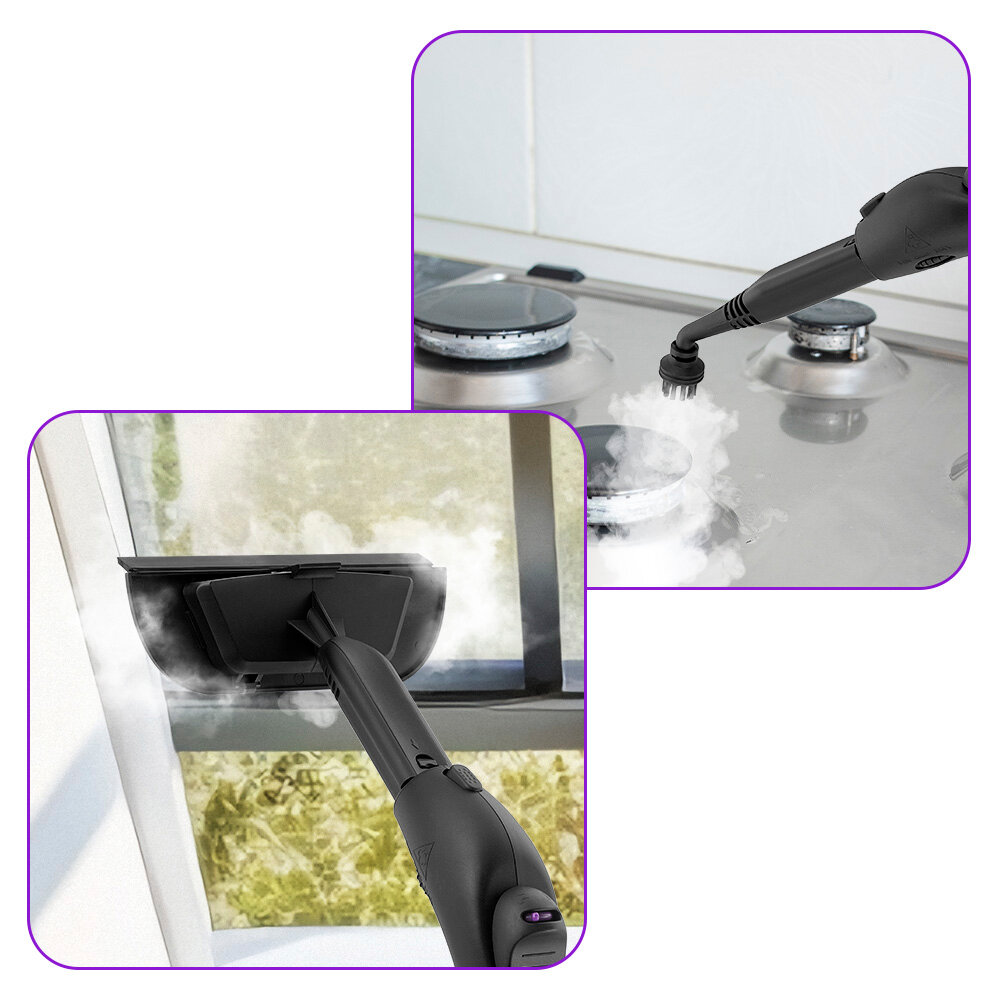 | В комплекте | насадка для пола, насадка-скребок, круглая щетка, паровой пистолет, рамка для чистки ковров, тряпка, удлинительные трубки, форсунка для мытья окон, форсунка для чистки пола, форсунка точечной струи, штанга удлинитель |