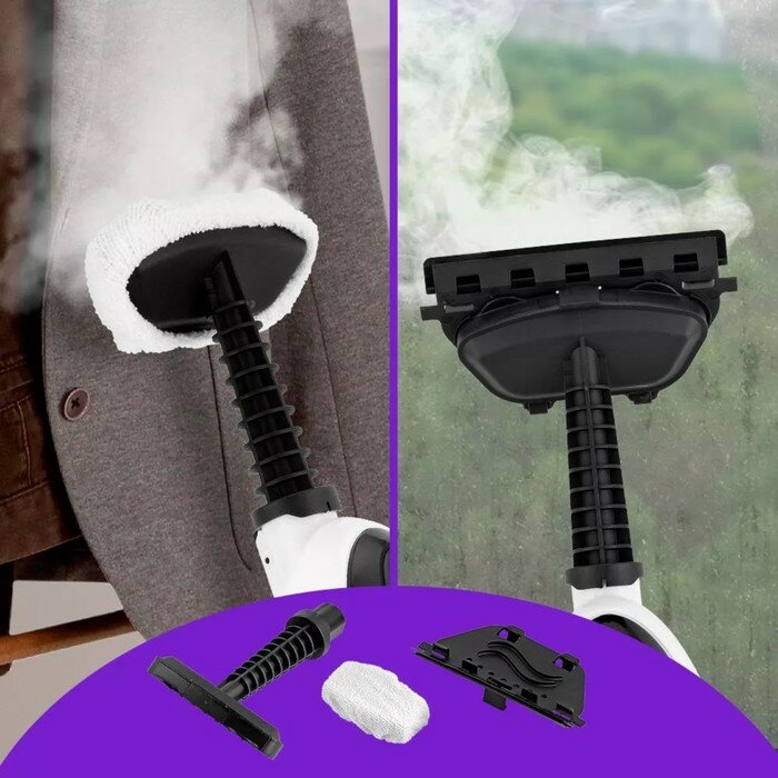 10 цен на Kitfort Паровая швабра Kitfort KT-1043, 1500 Вт, 350 мл, шнур 8 м, чёрно-белая
