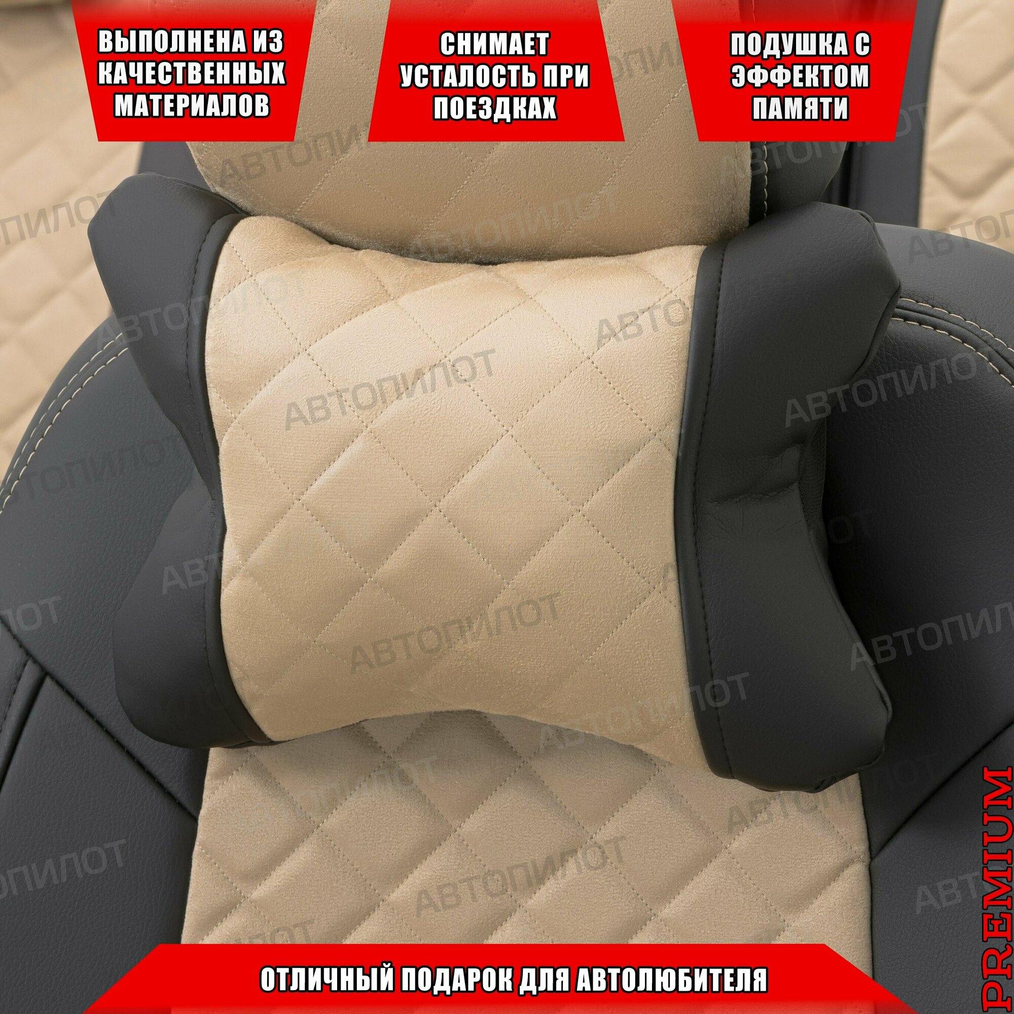 Подушка под шею с эффектом памяти для Honda Legend седан IV (2004-2010) / Хонда Легенд, Экокожа с алькантарой ромб, Бежевый с чёрным информация: