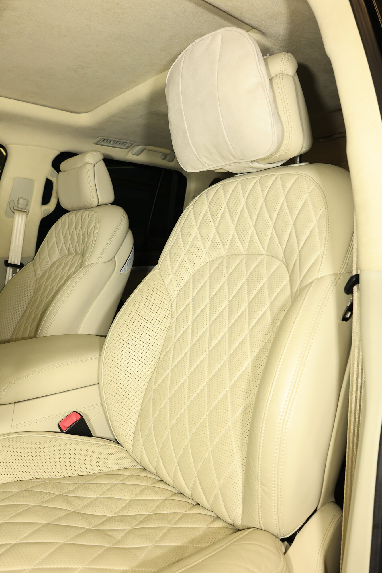 Подушка под шею с эффектом памяти для Honda Legend седан IV (2004-2010) / Хонда Легенд, Экокожа с алькантарой ромб, Бежевый с чёрным
