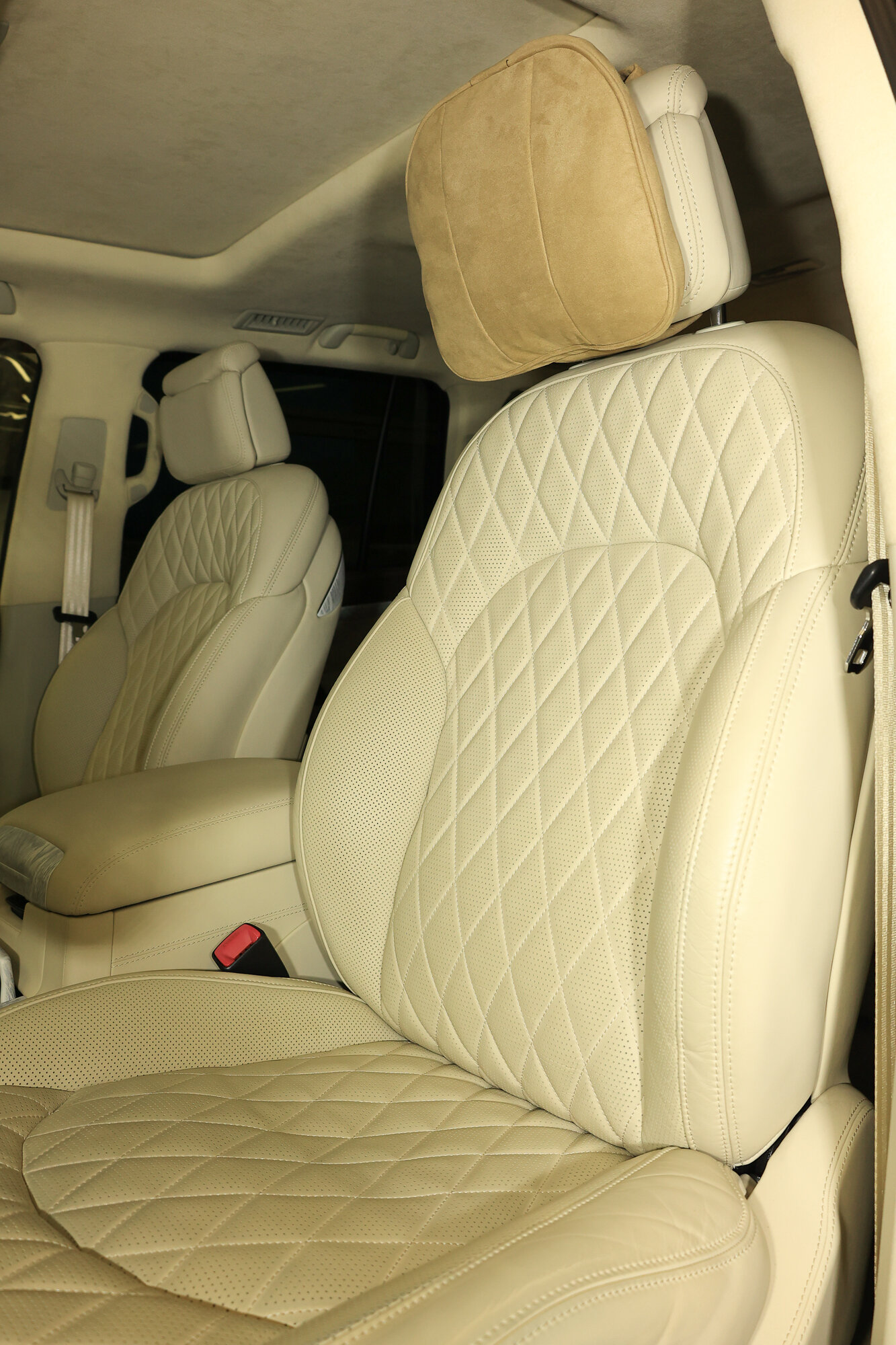 Подушка под шею с эффектом памяти для Honda Legend седан IV (2004-2010) / Хонда Легенд, Экокожа с алькантарой ромб, Бежевый с чёрным