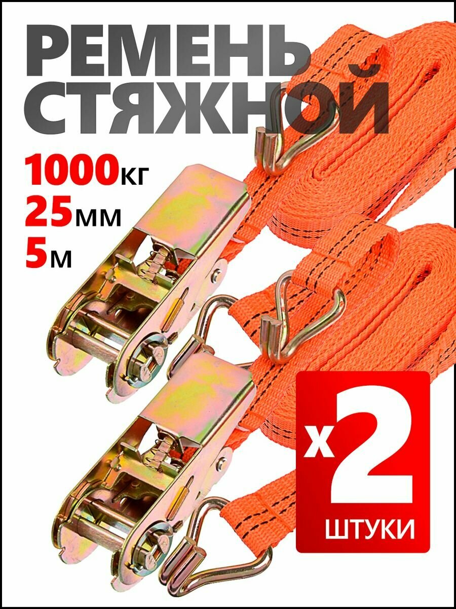 Стяжной ремень 2шт для крепежа и перевозки груза с крючками информация: