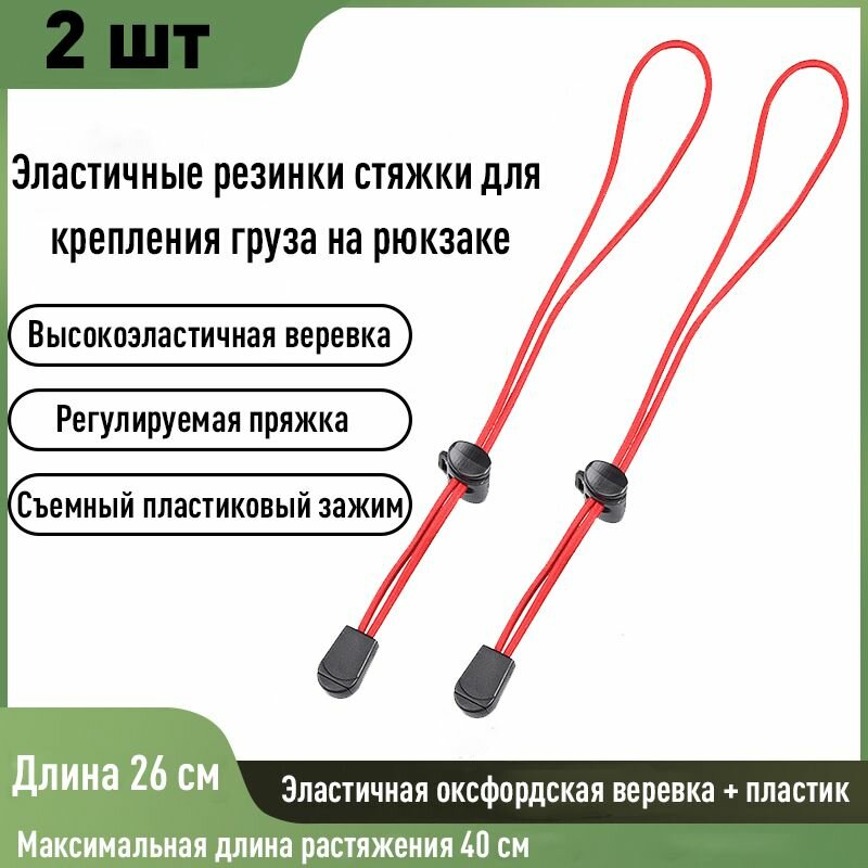 10 цен на Эластичные резинки стяжки для крепления груза на рюкзаке красный 2 шт