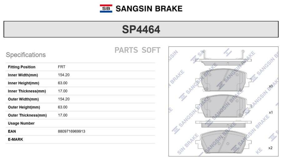 Колодки Передние Kia Sorento Iv (Mq4/Mq4a) 20-> Sangsin Brake Sp4464 Sangsin brake арт. SP4464