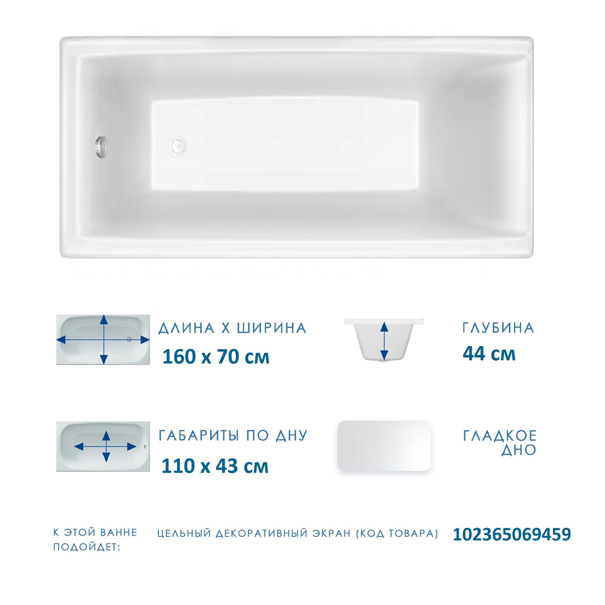 Ванна Тритон Джена 170x70 без каркаса 12 530 ₽