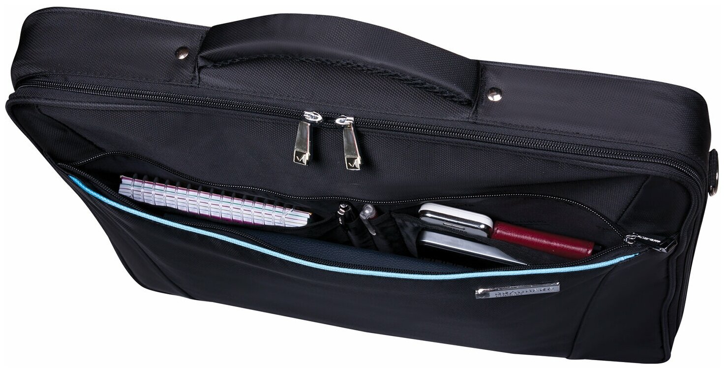 Сумка портфель Brauberg Practical с отделением для ноутбука 15,6", Blue line, черная, 29х40х7 см, 272603