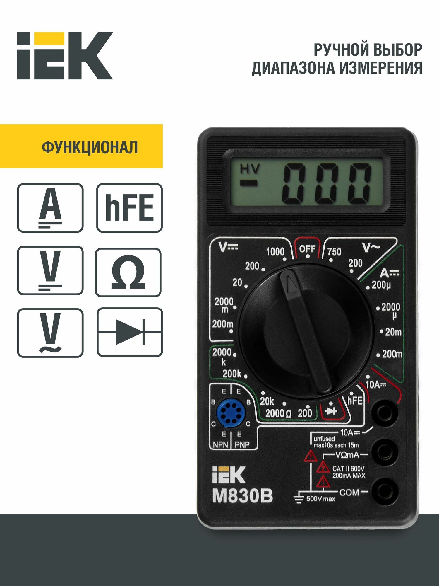 Мультиметр цифровой IEK Universal M830B, с ЖК-дисплеем