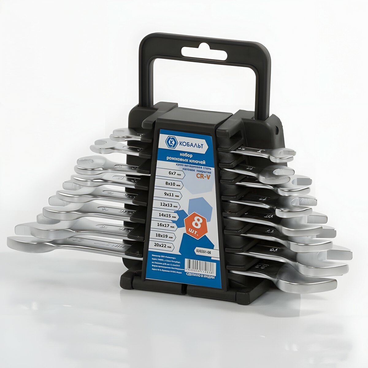 Набор ключей рожковых кобальт 6x7,8x10,9x11,12x13,14x15,16x17,18x19,20x22 мм (8 шт.) держатель