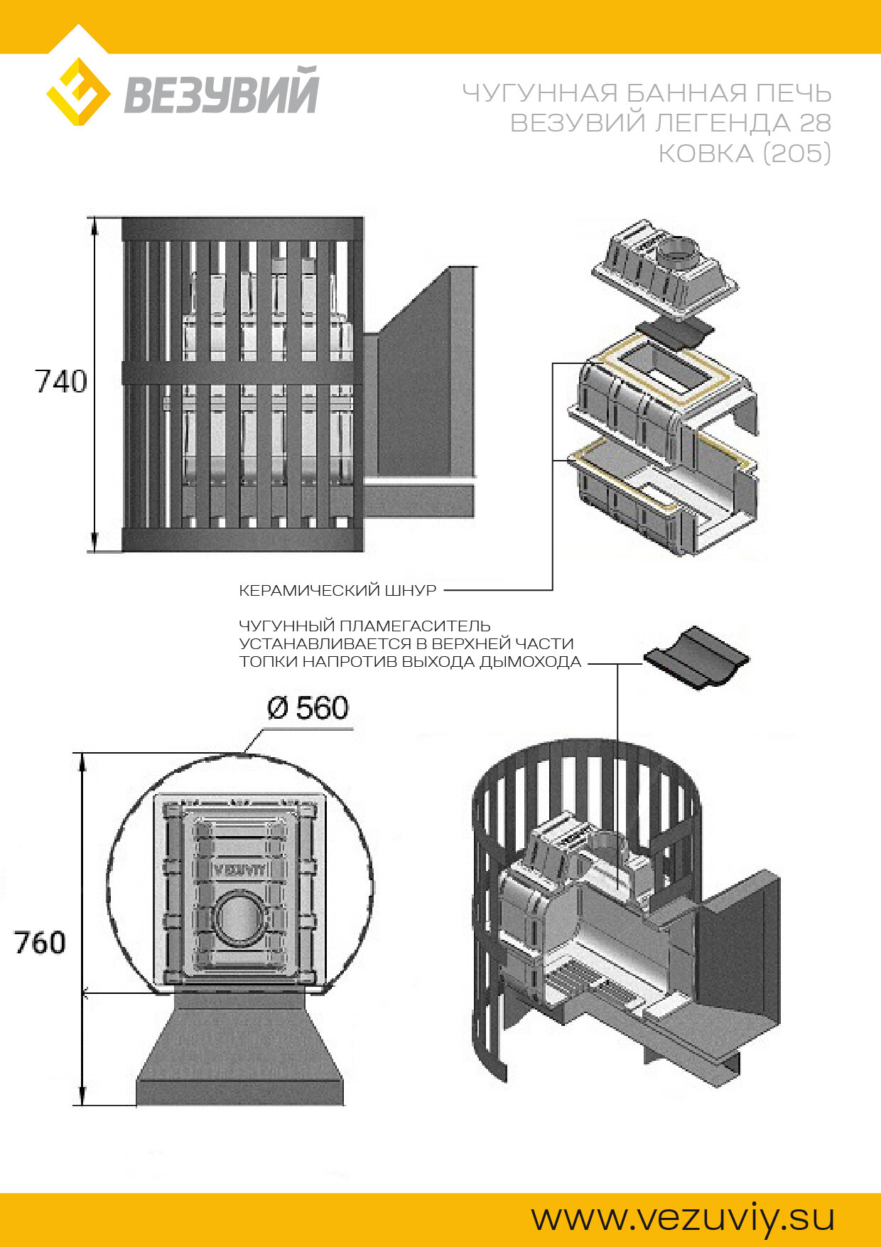 Печь везувий Легенда Ковка 28 (205) диаметр дымохода: 115 мм информация: