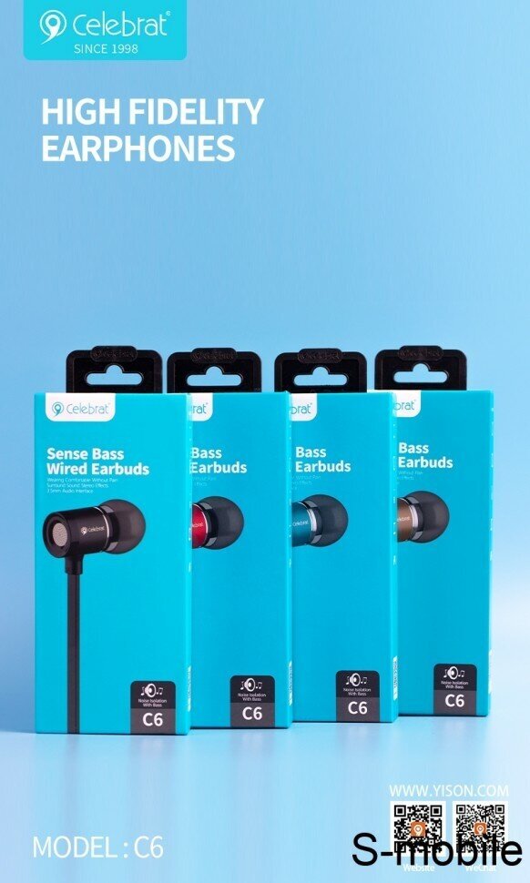 10 цен на Гарнитура внутриканальная Celebrat C6, чёрный/красный
