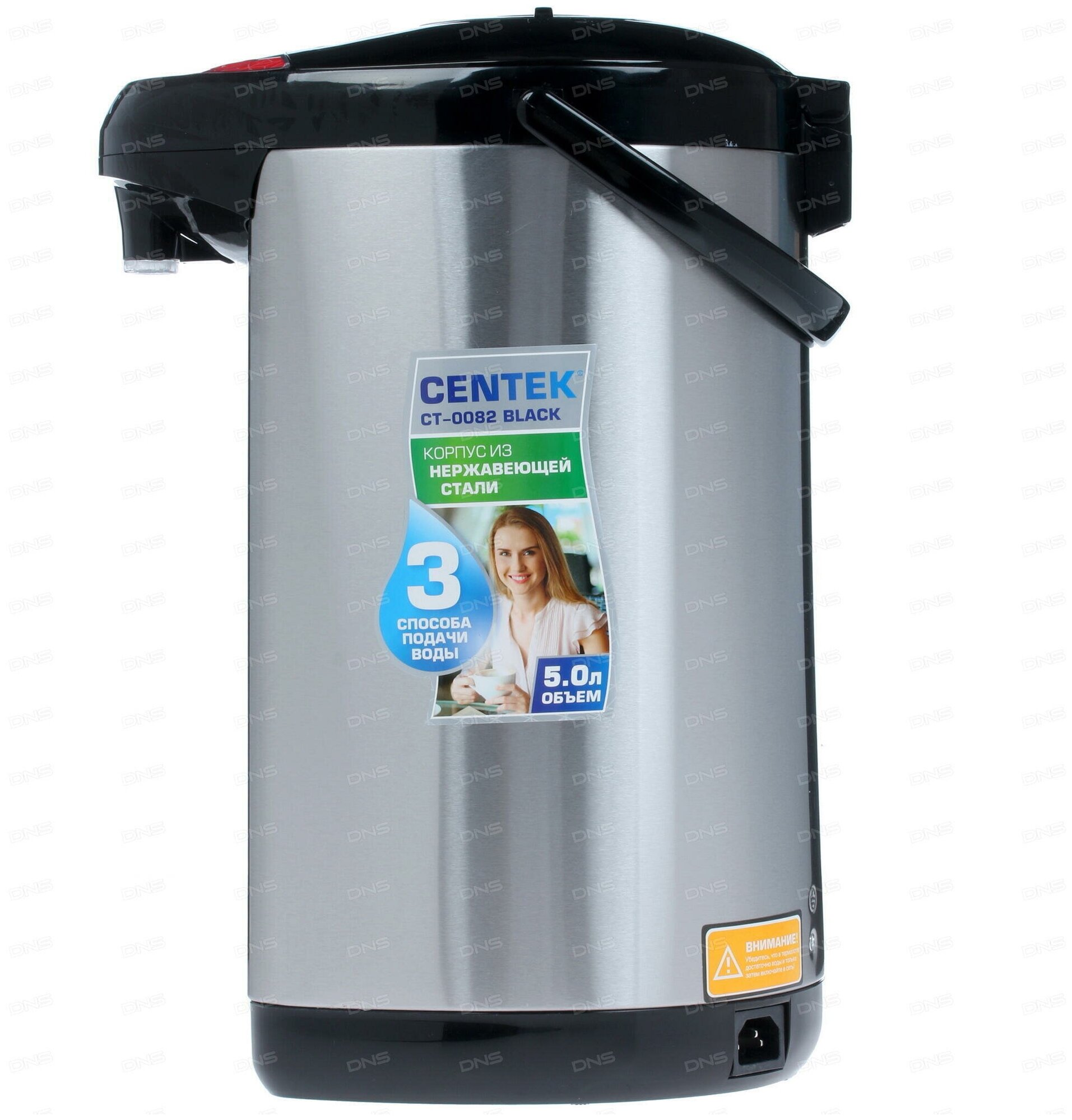Термопот на 5 литров, 3 режима подачи воды, CENTEK CT-0082, 850 Вт, 1 температурный режим, пластик/сталь, черный, CT-0082 Black 10 279 ₽