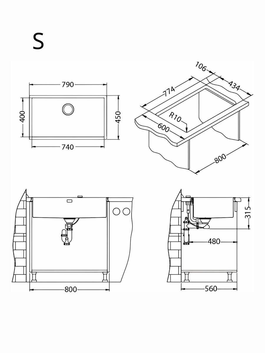 Мойка QUADRIX 60 BRS-90 790X450X 200 в комплекте с сифоном 1130550, информация: