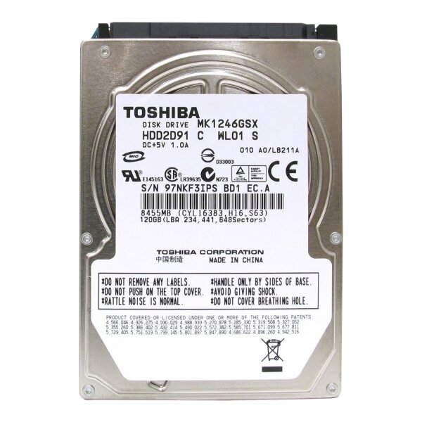 Жесткий Диск Toshiba MK1246GSX 120Gb SATAII 2,5" HDD информация: