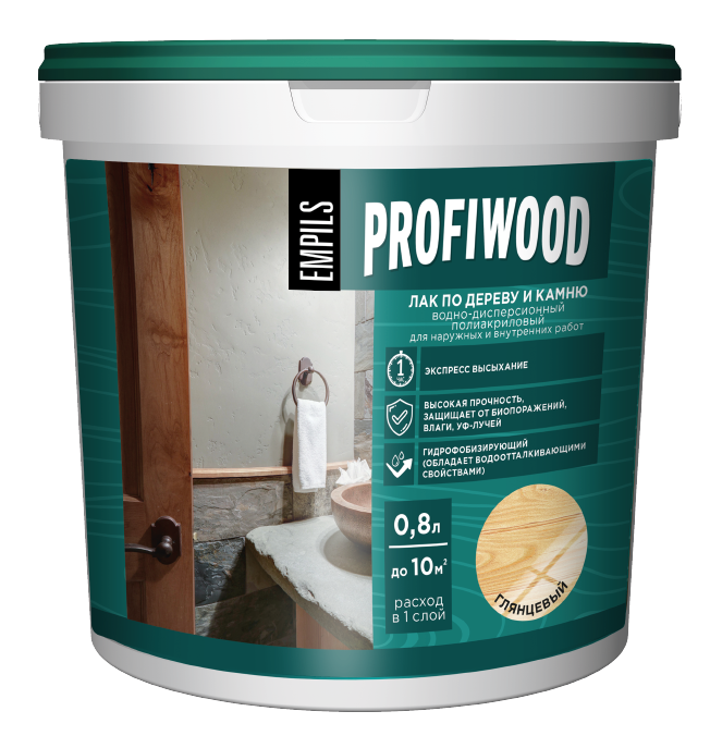 Лак по дереву и камню PROFIWOOD водно-дисперсионный полиакриловый Глянцевый 0,8л