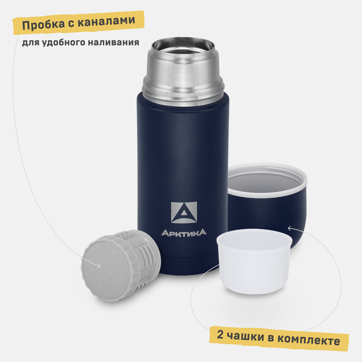 Термос для чая и кофе Арктика 105-500 синий матовый 0,5 литров с двумя чашками в комплекте 1 490 ₽