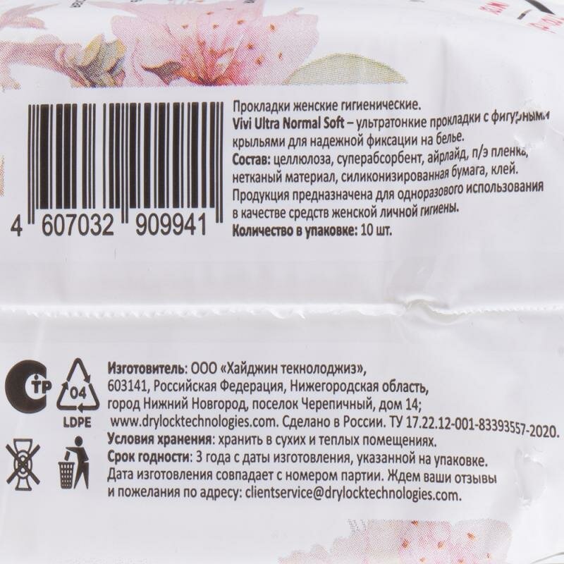 Прокладки "Ultra Normal Soft", Vivi, 10 шт. информация: