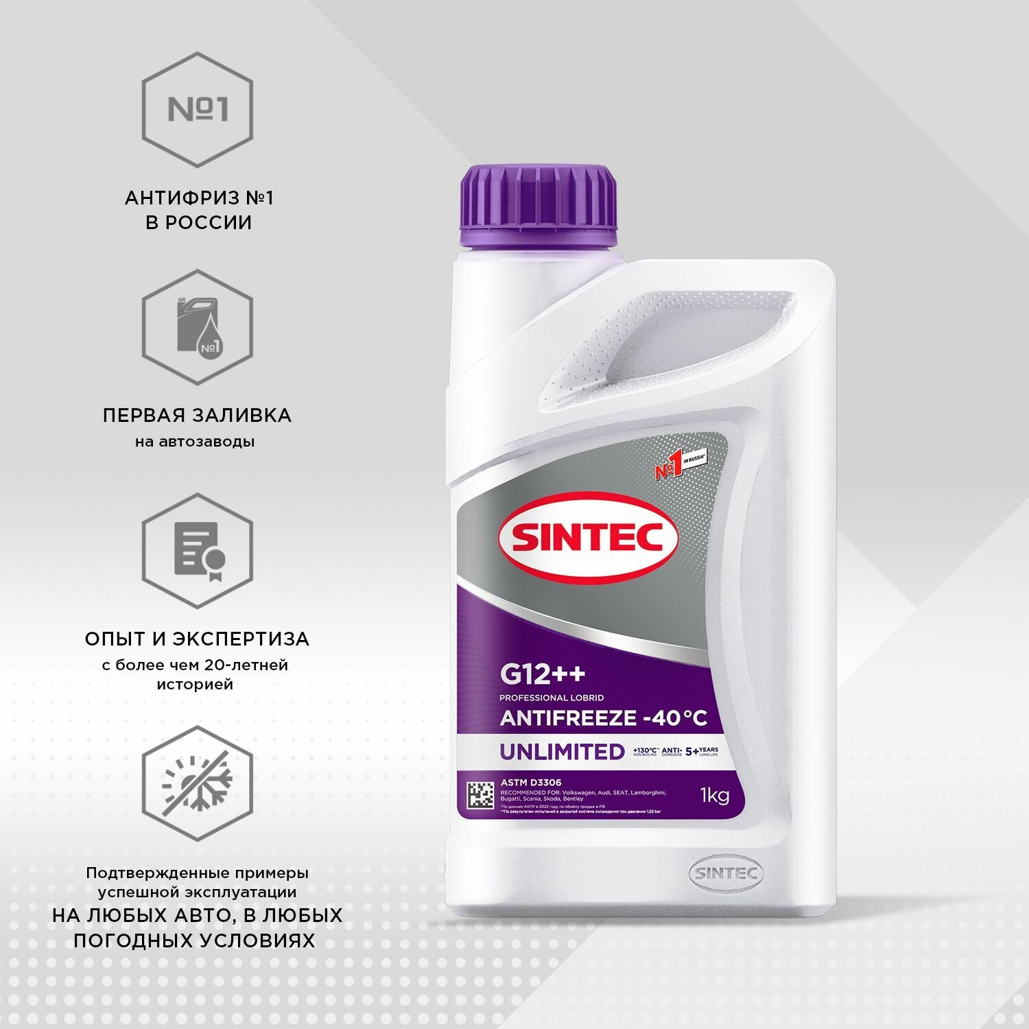 Антифриз (-40) фиолетовый G12++ Unlimited violet SINTEC 1кг. /кор.12шт/ SINTEC 990565 | цена за 1 шт 650 ₽