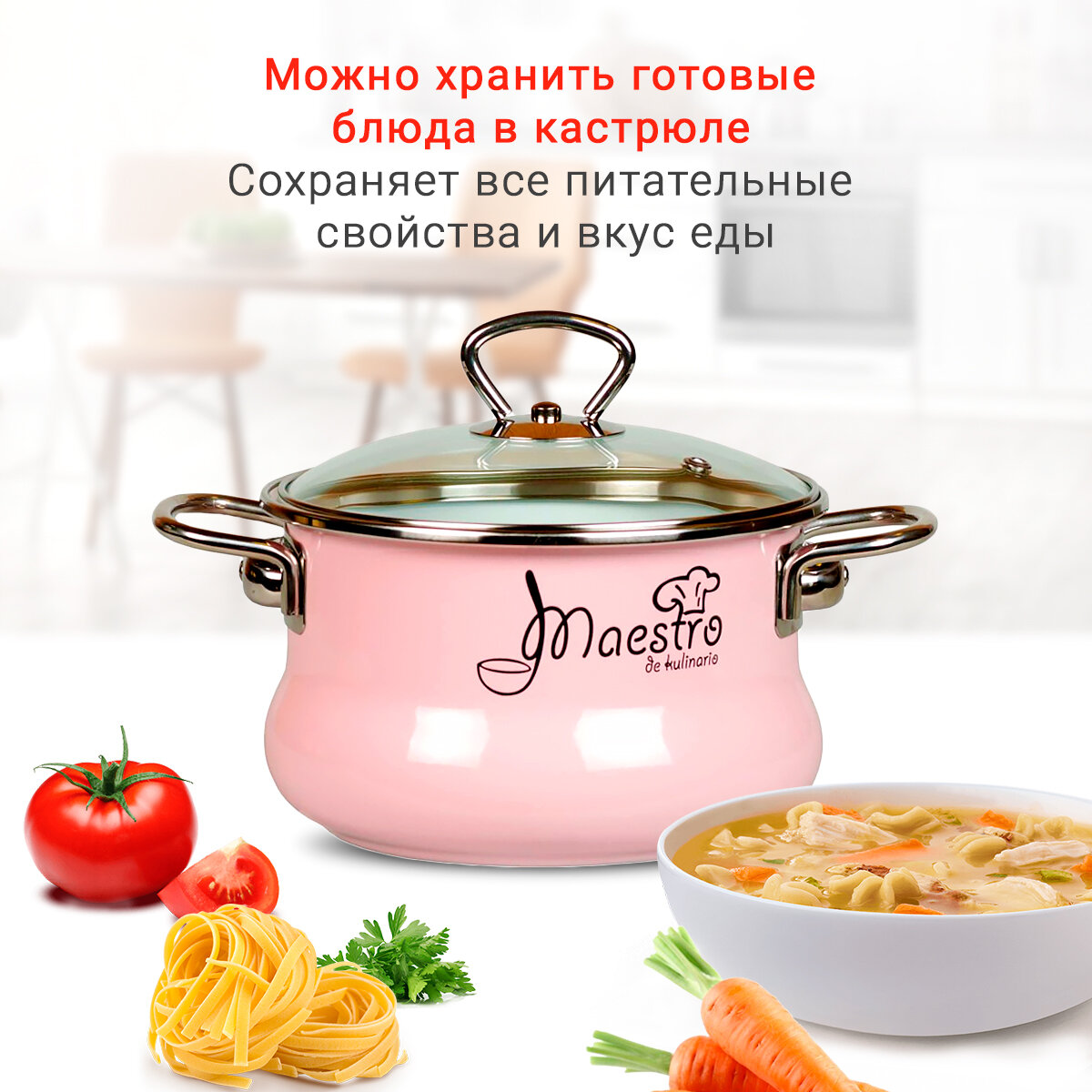 Кастрюля эмаль 3.0Л ТОР MAESTRO розов 8ST205S (4) череповец