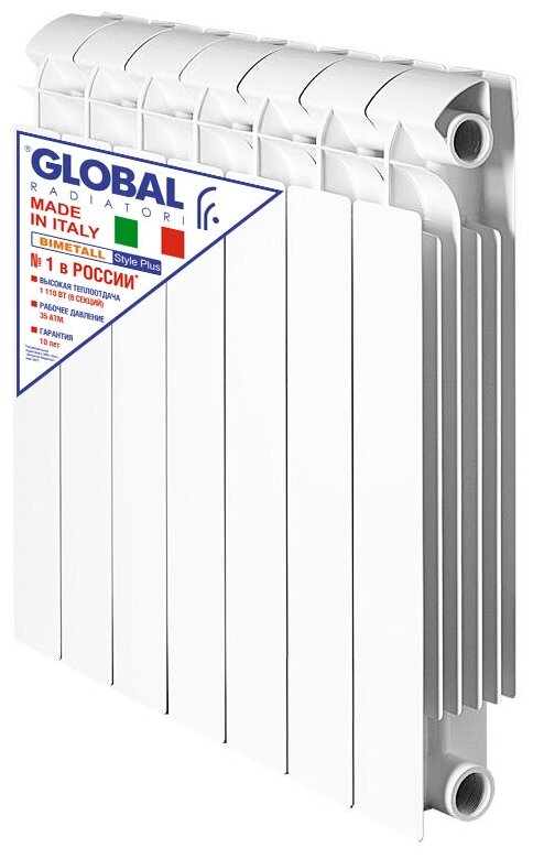 Биметаллический секционный радиатор GLOBAL Style Plus 350, 10 секций, белый