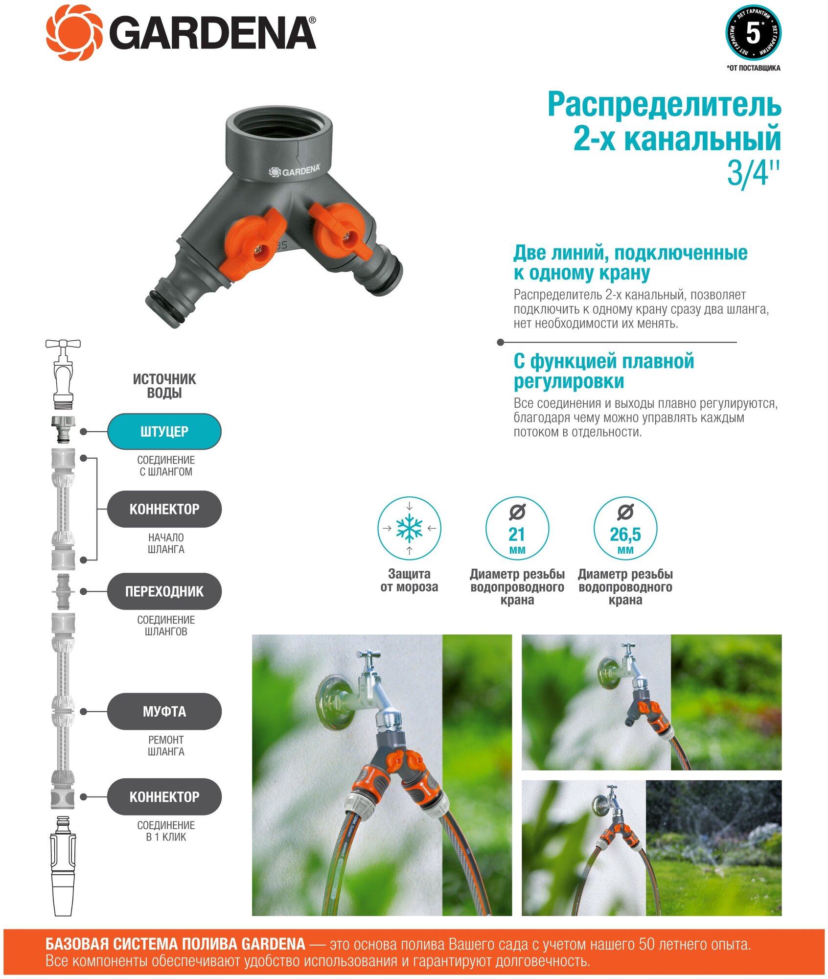 Фитинг Распределитель 2-х канальный 3/4" (00938-20.000.00) GARDENA информация: