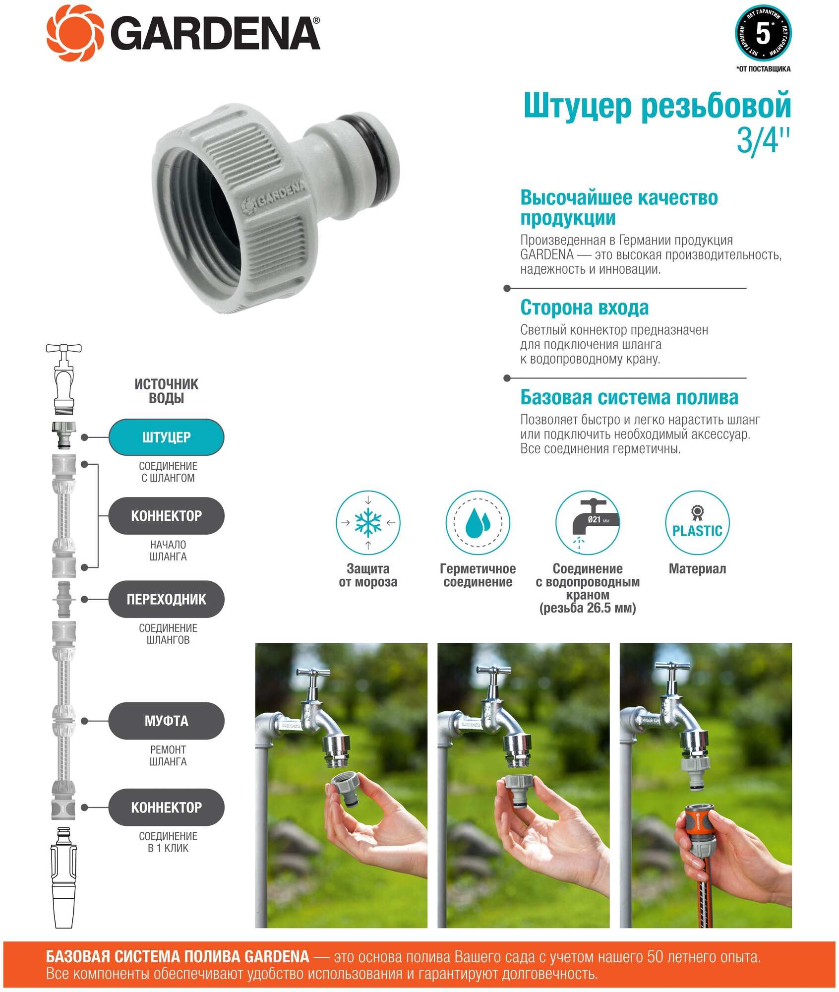 Gardena Штуцер резьбовой 3/4" информация: