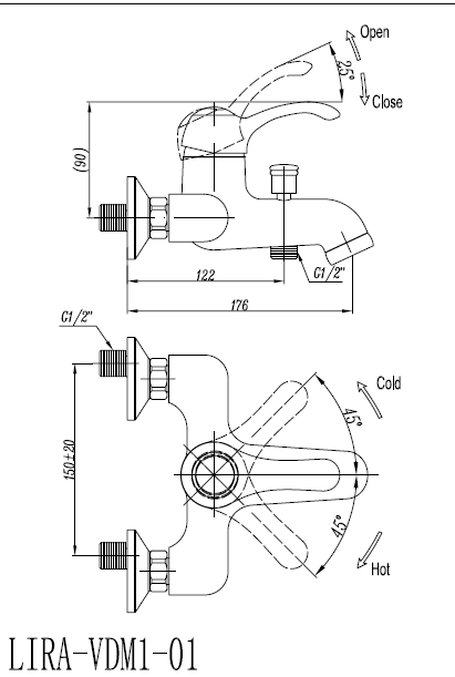 LIRA-C-VDM1-02 Смеситель для ванны и душа, бронза