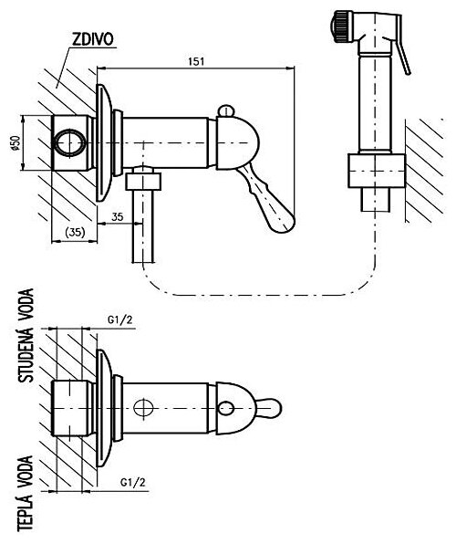 Смеситель с гигиеническим душем Rav Slezak Labe L047 (с внутренней частью)