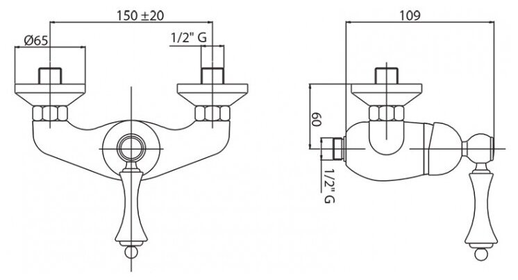 Смеситель на раковину настенный Эверест B46-350 с круглым поворотным изливом, кран-буксы 1/2", хром
