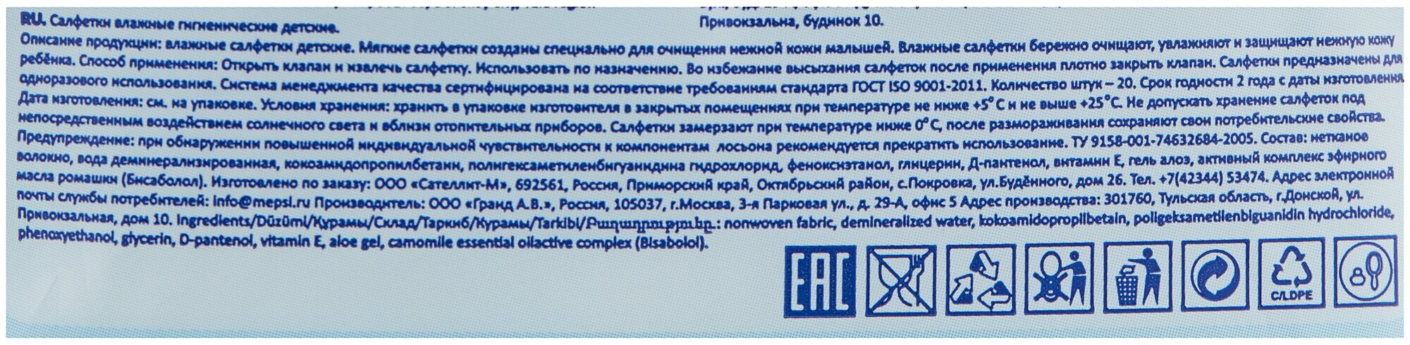 MEPSI Детские влажные салфетки, 20 шт информация:
