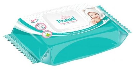 Салфетки влажные PREMIAL для детской гигиены, с Алое-вера, с клапаном , 80 штук.