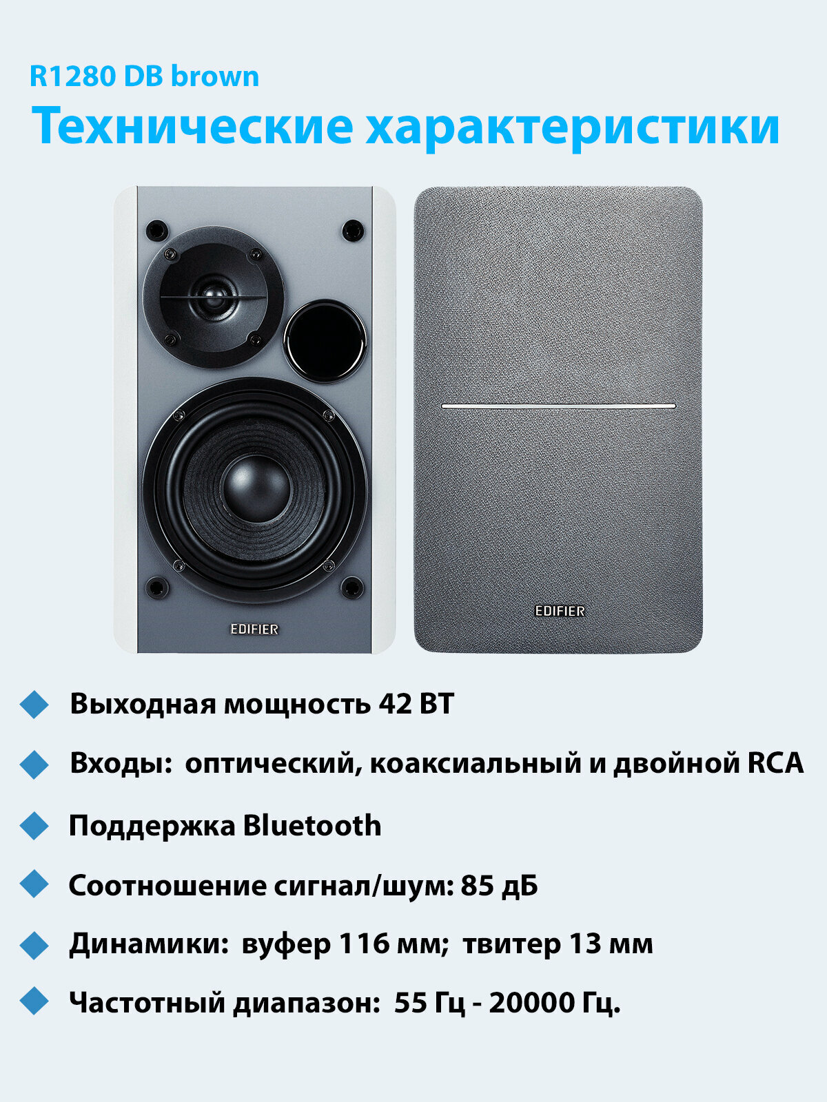 Колонки Edifier R1280DB White, дерево, акустическая система 2.0, Bluetooth, мощность(RMS): 42 Вт
