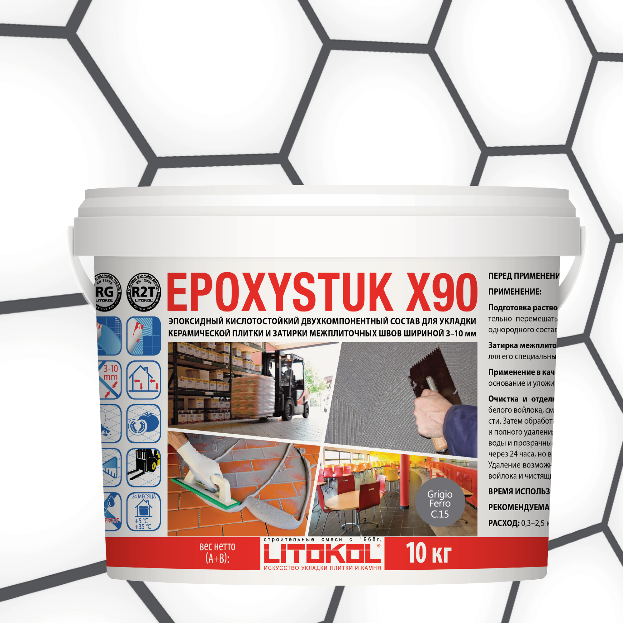 Эпоксидная затирка LITOKOL EPOXYSTUK X90 (литокол эпоксистук Х90) C.15 (серый), 10 кг