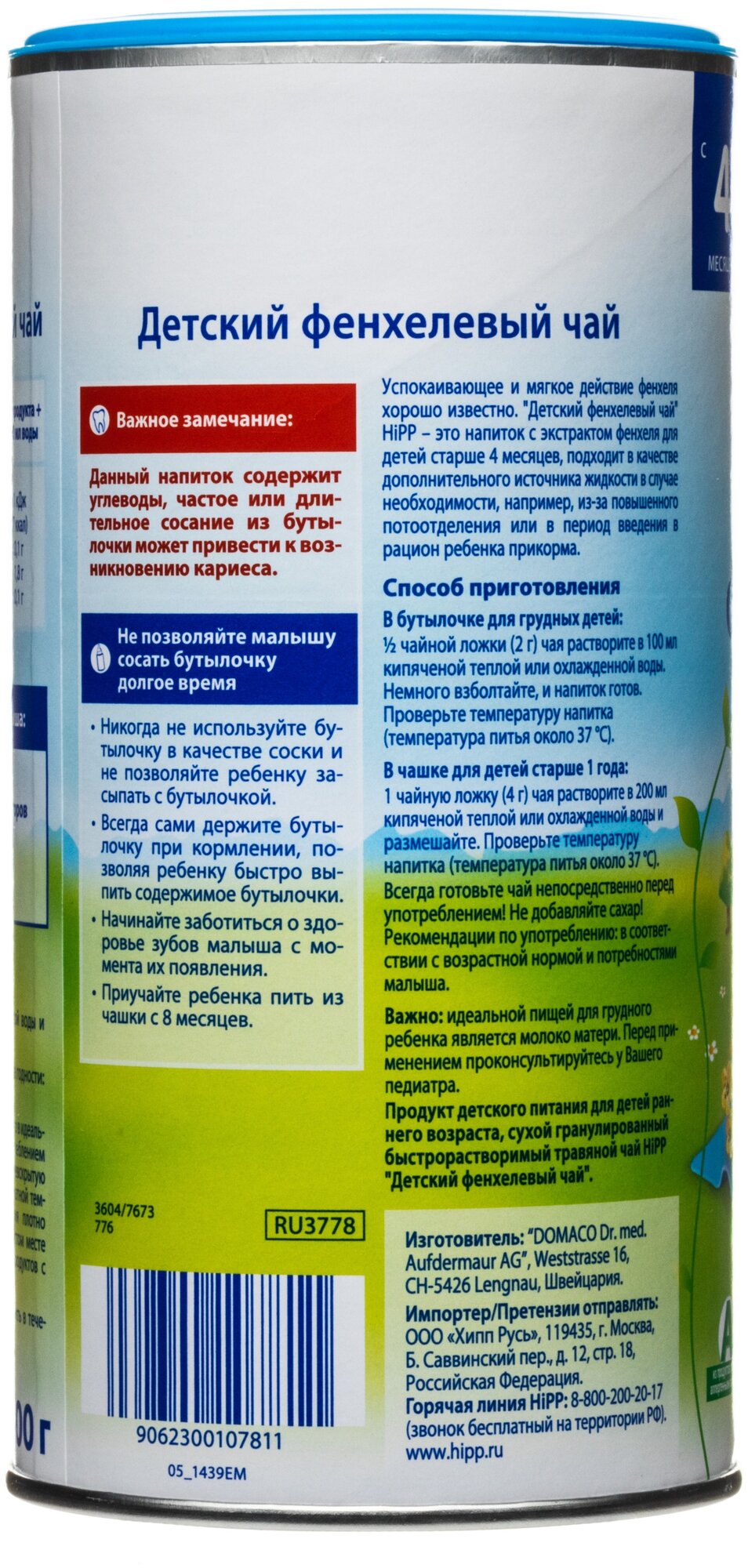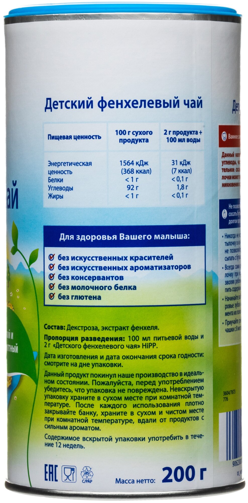 HIPP Чай Фенхелевый с 4+ мес 200 гр информация: