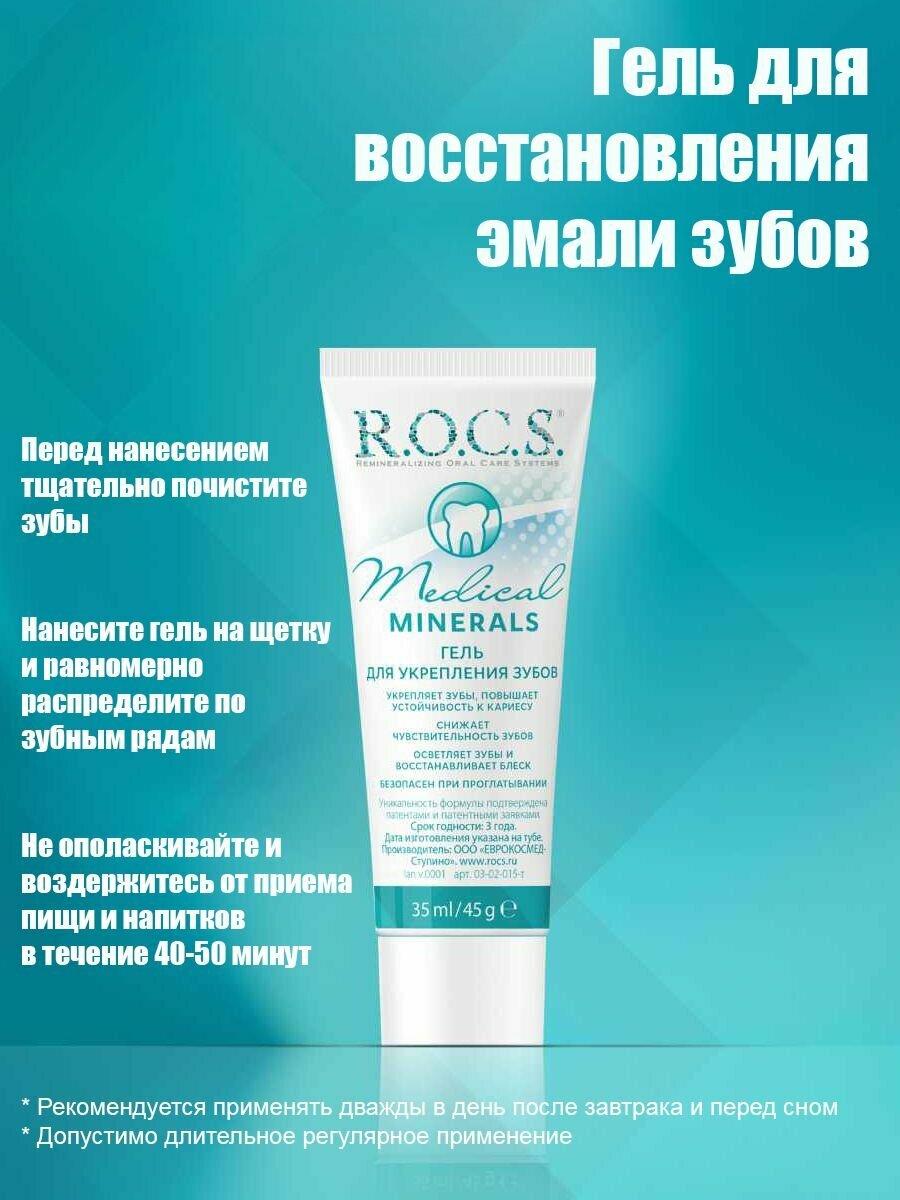 Гель реминерализующий для укрепления зубов и десен r.o.c.s. медикал минералс, 45гр информация: