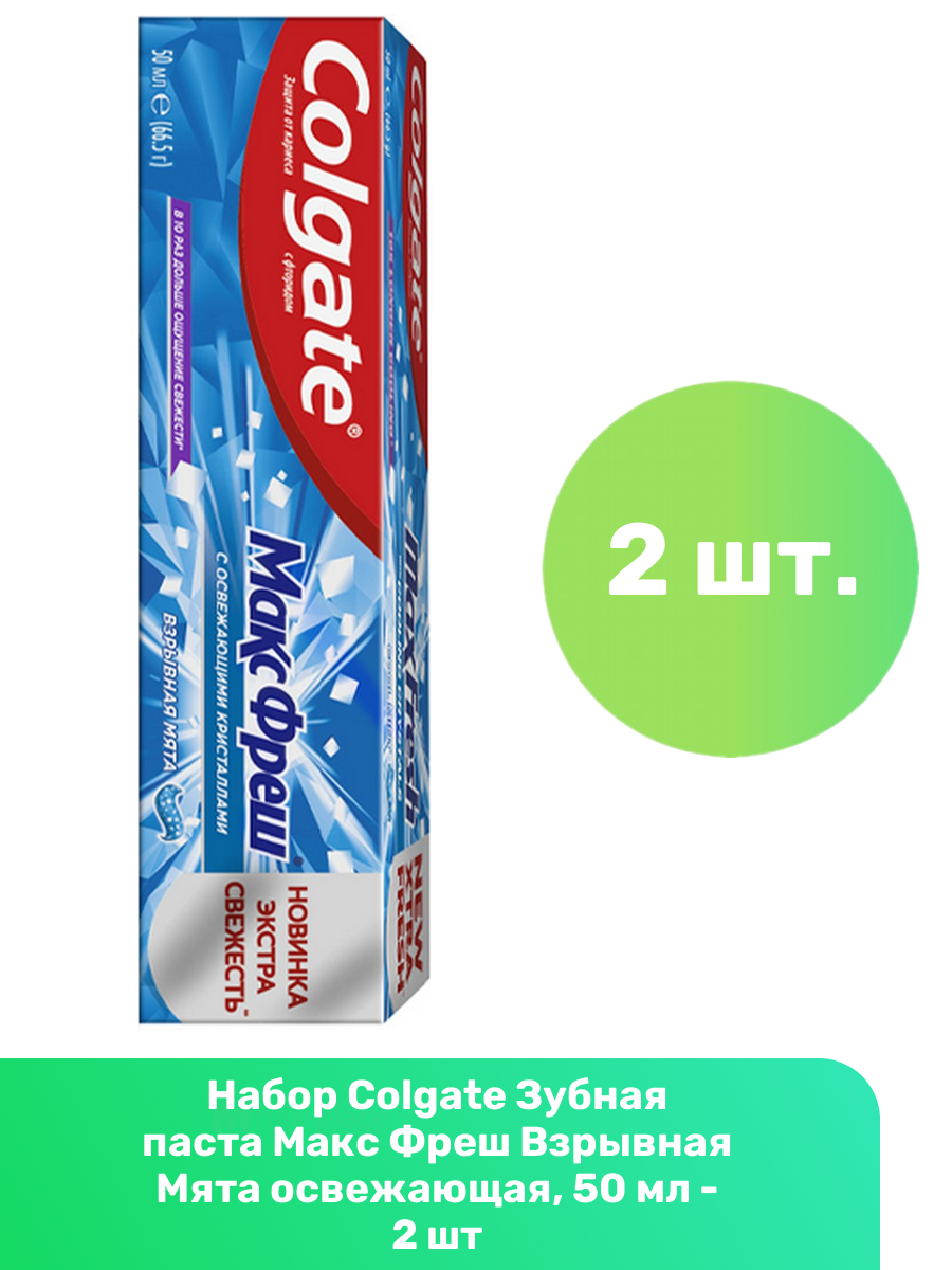 Colgate Зубная паста Макс Фреш, Взрывная Мята, 50 мл, 2 штуки информация: