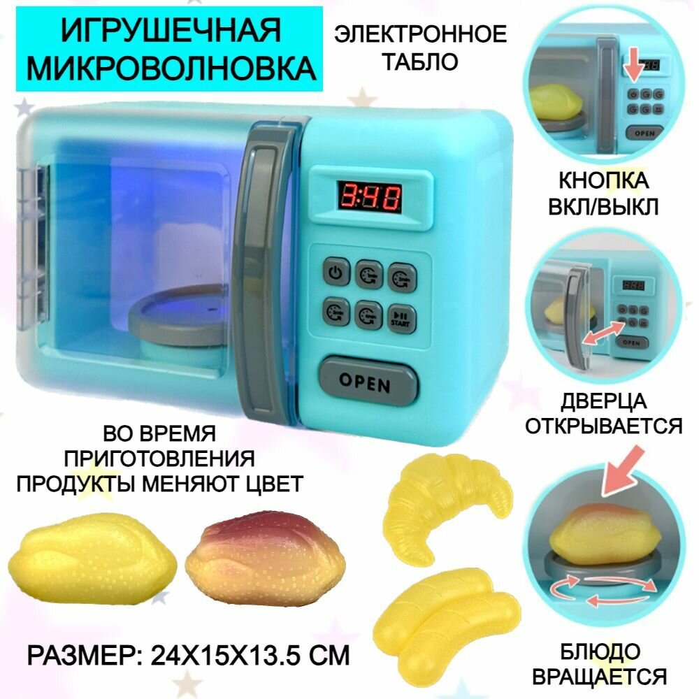 Детская бытовая техника Микроволновая печь My Home с аксессуарами, микроволновка с подсветкой, блюдо вращается, продукты меняют цвет, микроволновка д информация: