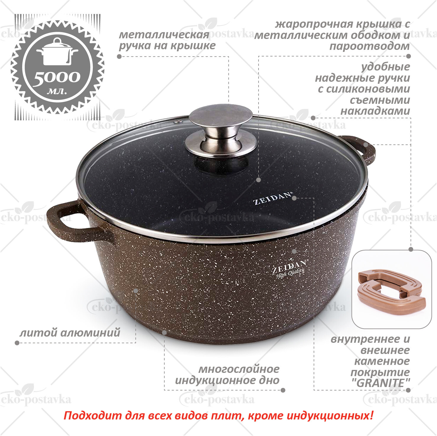 Кастрюля c антипригарным покрытием из литого алюминия ZEIDAN 5 л с крышкой для газовых и электрических плит информация: