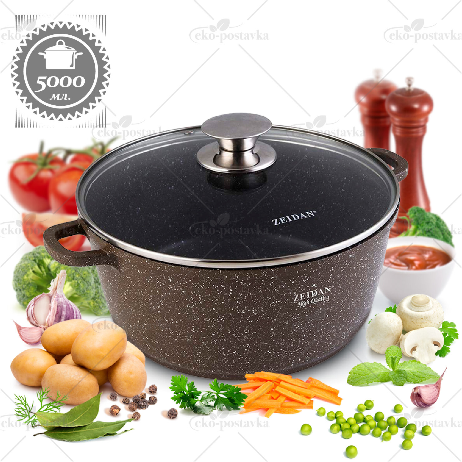 10 цен на Кастрюля c антипригарным покрытием из литого алюминия ZEIDAN 5 л с крышкой для газовых и электрических плит