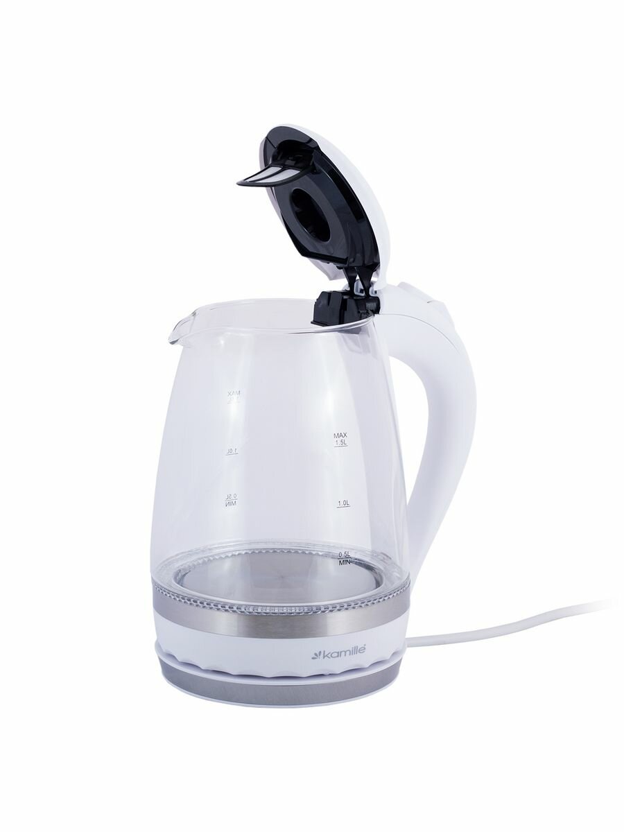 Чайник электрический 1,5 л. стеклянный Kamille KM-1700B (черный) с синей LED подсветкой (1,5 л. / черный)