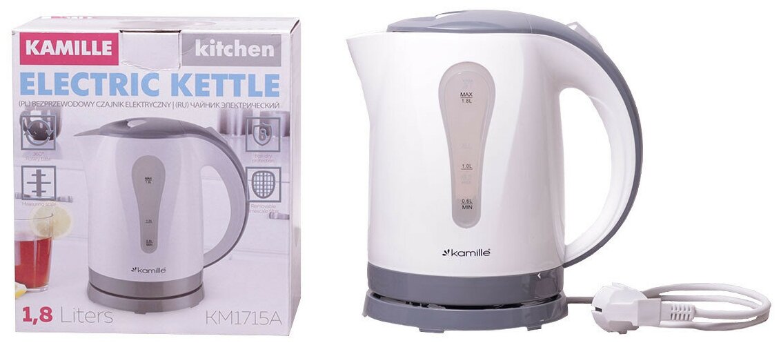 Чайник 1,8л электрический пластик белый с серым информация: