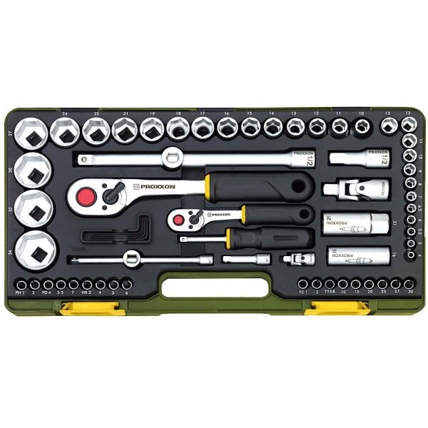 Полный набор с флажковыми трещотками 1/2" + 1/4", 65 поз. Proxxon (23286)