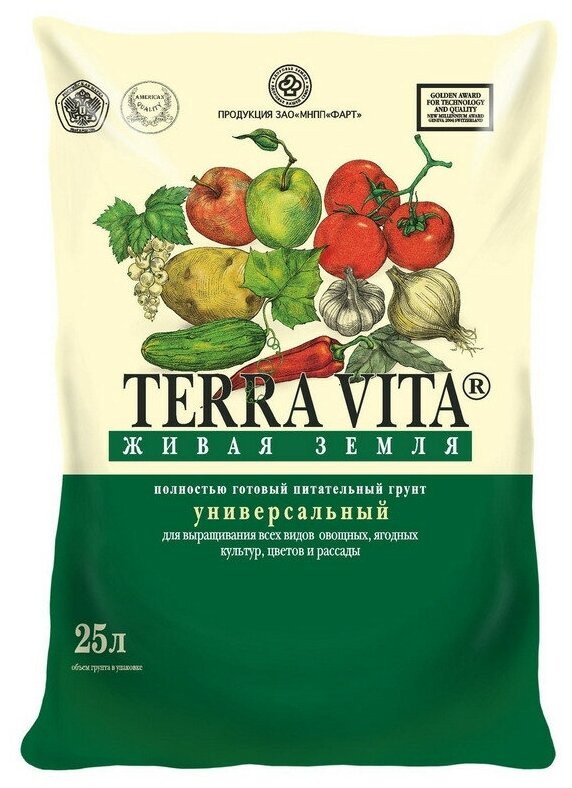 Грунт Terra Vita "Живая Земля" универсальный, 25л, для овощных, ягодных культур, цветов и рассады