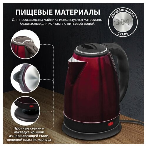 Чайник SONNEN KT-118, 1,8 л, 1500 Вт, закрытый нагревательный элемент, нержавеющая сталь, серебристый, 452926 452926