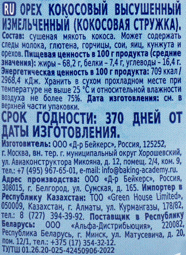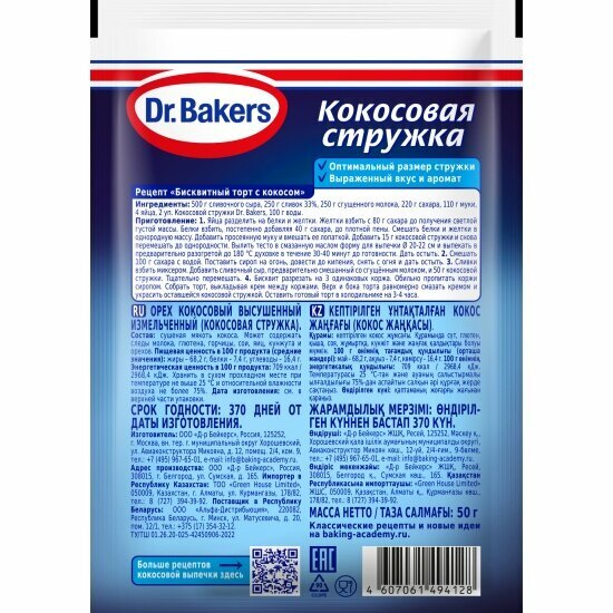 Кокосовая стружка Dr Bakers 5х50гр информация: