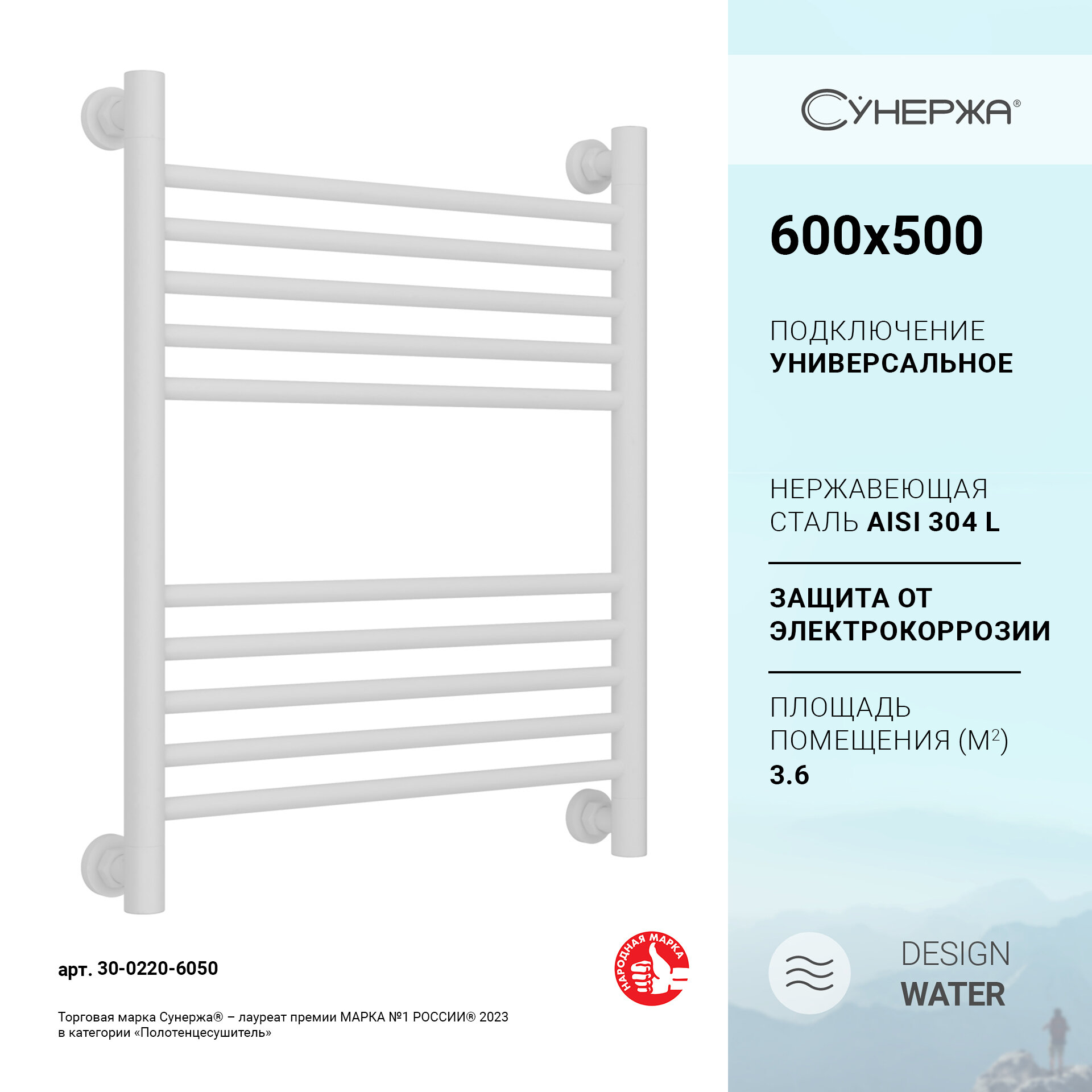 Водяной полотенцесушитель Сунержа Богема+ (прямая) 600x500 матовый белый арт. 30-0220-6050